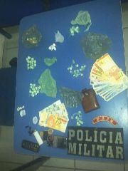 Em ronda pela avenida Dos Trabalhadores, no Bairro Planalto, os policiais avistaram um grupo de jovens, foi feita abordagem e localizado 70 cabecinhas de pasta base com Ali e Maicon, além de R$ 200,00 em dinheiro trocado.
