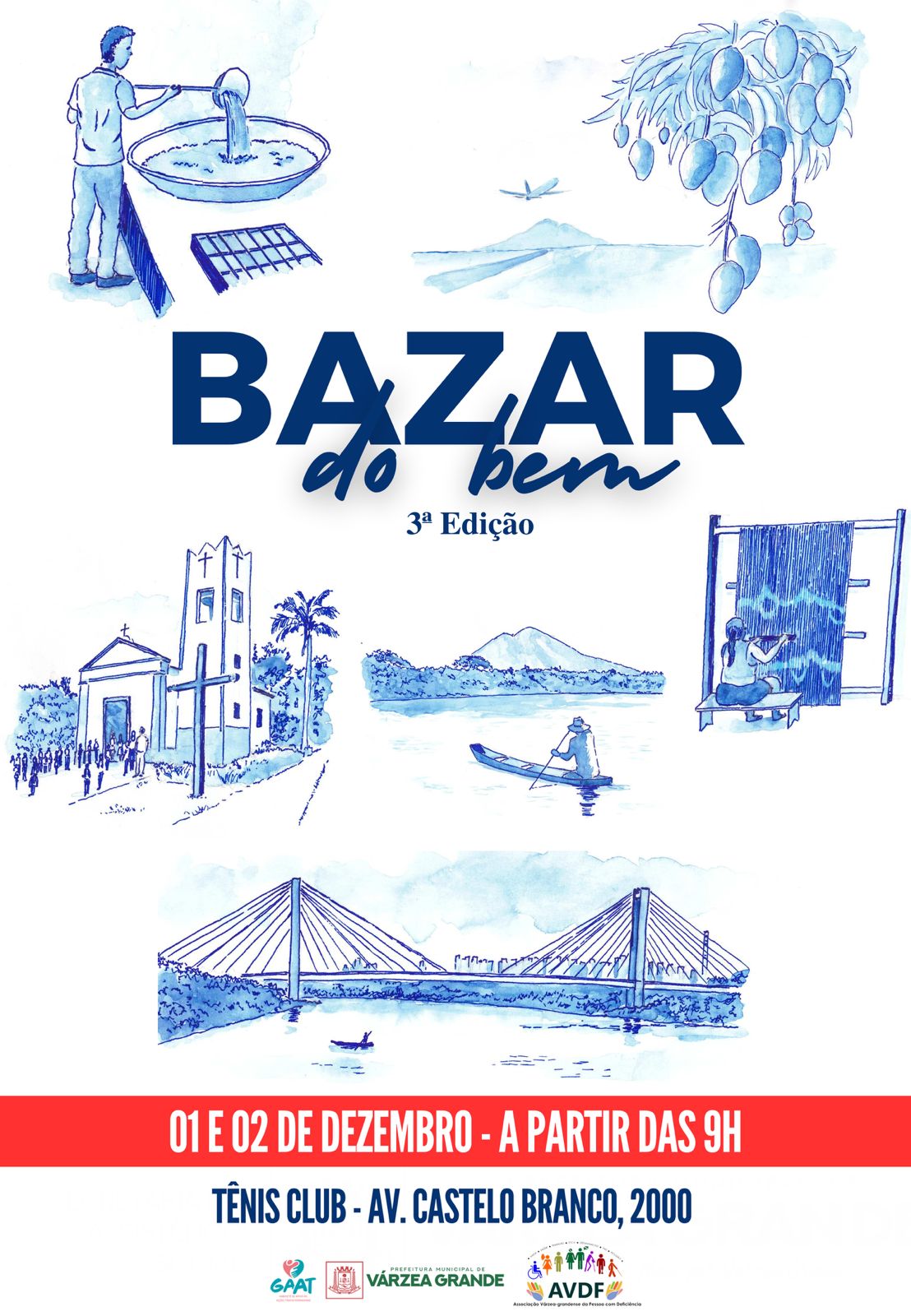 Mantendo o princípio basilar de realizar um evento que resulte em ajudar instituições que cuidem de pessoas, o Gabinete de Apoio às Ações Transformadoras (GAAT) e a Prefeitura de Várzea Grande estão prontos para fazer história novamente com a terceira edição do “Bazar do Bem”. O evento será realizado nos dias 1 e 2 de dezembro, no antigo Várzea Grande Tênis Clube (em frente à Prefeitura Municipal), prometendo dias de generosidade, solidariedade e esperança que neste ano vai destinar sua renda para a Associação Várzea-Grandense da Pessoa com Deficiência (AVDF).