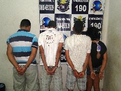 Policias militares do 4º Batalhão, fizeram a prisão de Luiza Cristina dos Santos, Jonathan Rodrigues de Araújo, ambos de 18 anos, Marcos Rogério Nascimento Castilho de 27 anos e Karllos Eduhardo Pereira Costa de 20 anos, por formação de quadrilha e roubo a estabelecimento comercial.