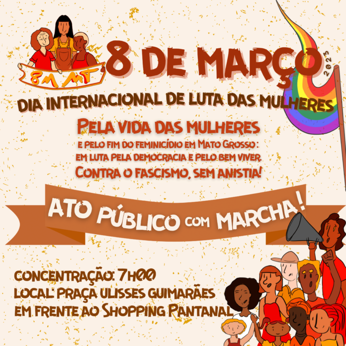 capital mato-grossense, culminando com ato público na manhã do Dia Internacional das Mulheres. Estarão presentes mulheres do campo e da cidade que acompanham a agenda nacional de jornada de lutas das mulheres.