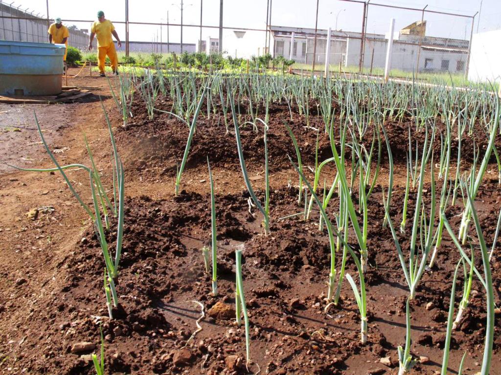Seis reeducandos cuidam do plantio, cultivo e colheita das hortaliças, sob a orientação do agente penitenciário Ageu Vieira. A atividade, explica ele, além de proporcionar um incremento na alimentação dos reeducandos, também propicia e remição de pena pelo trabalho ao grupo que cuida da horta.