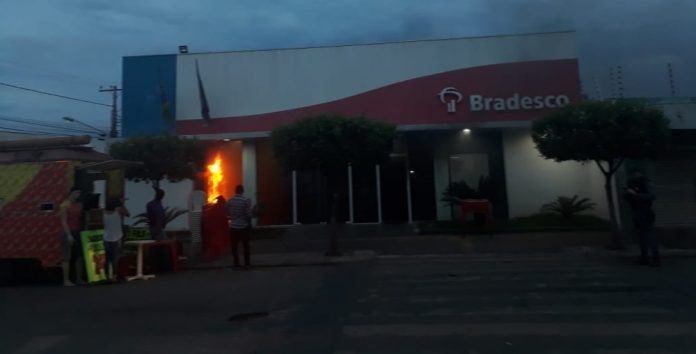 Criminosos entraram no local, atearam fogo e quebraram a porta de vidro da agência. O Corpo de Bombeiros foi chamado e conseguiu apagar as chamas antes que atingissem outros setores do banco.