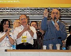 Depois de quase seis meses de guerra no tucanato paulista, o ex-governador Geraldo Alckmin foi sacramentado como candidato do PSDB à Prefeitura de São Paulo, com 89,9% dos votos da convenção do partido, realizada ontem. A indicação – com uma margem tão grande de votos – só foi possível após a intervenção do governador José Serra, que demoveu o grupo de vereadores e tucanos com cargos na prefeitura da idéia de levar à convenção o nome do prefeito Gilberto Kassab para disputar com Alckmin a preferência do partido. Com essa articulação, o governador teria saído mais fortalecido em sua caminhada rumo à campanha presidencial, em 2010.