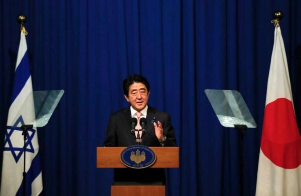 Abe disse em Jerusalém que o Japão manteria a ajuda, que ele afirmou ter natureza humanitária.