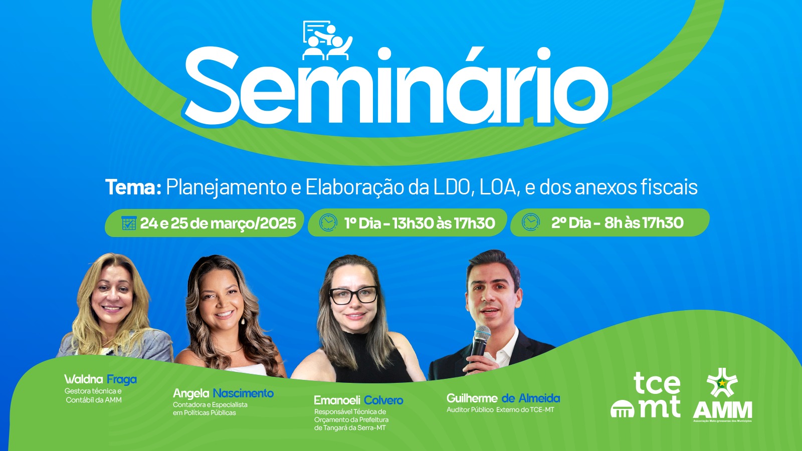 A Associação Mato-Grossense dos Municípios (AMM), em parceria com o Tribunal de Contas do Estado de Mato Grosso (TCE-MT), realiza, nos dias 24 e 25 de março, a mais uma edição do Seminário de Formação, com o tema “Gestão Fiscal na Prática: Planejamento e Execução Orçamentária para Municípios”.