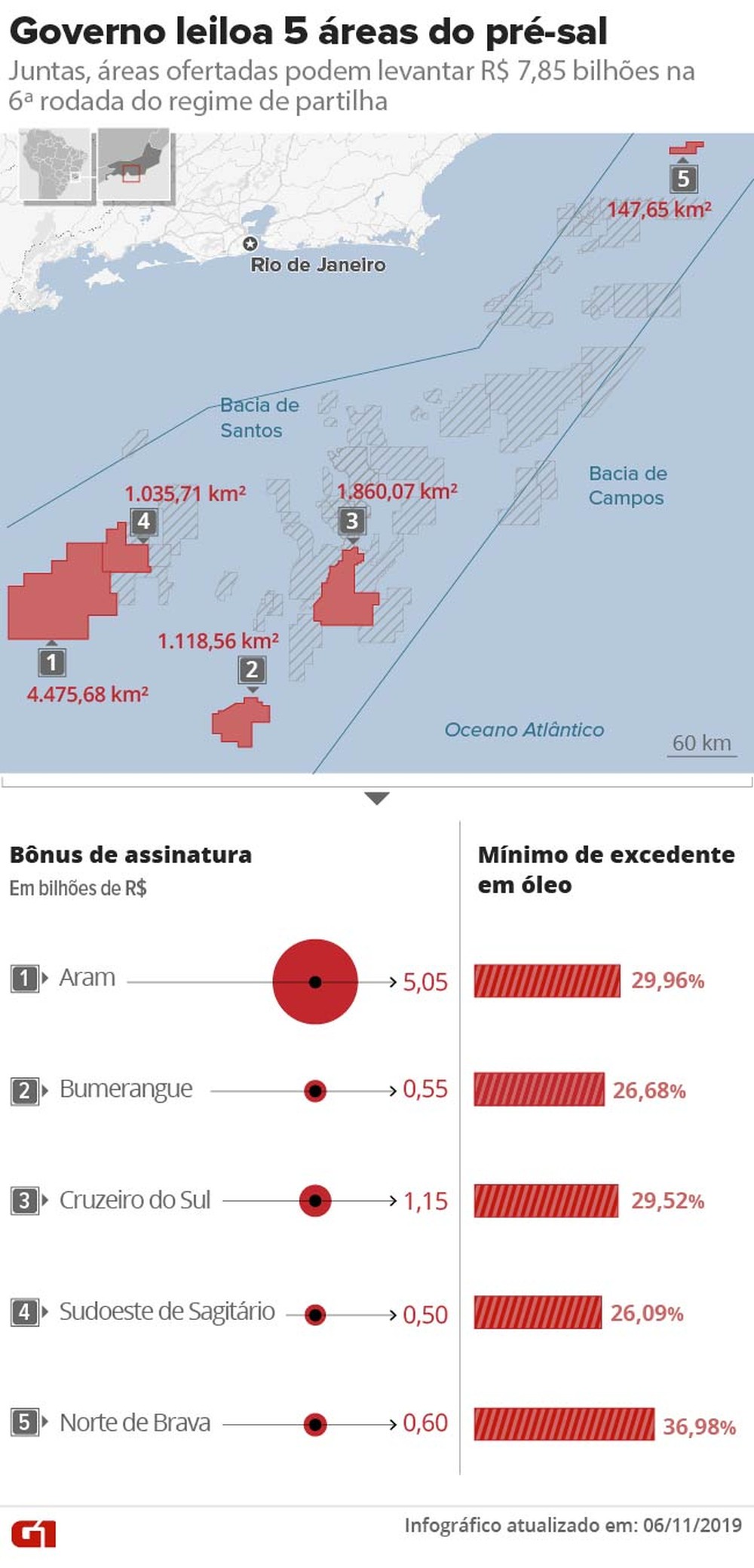 6ª rodada do regime de partilha leiloa 5 áreas do pré-sal — Foto: Aparecido Gonçalves/Arte G1