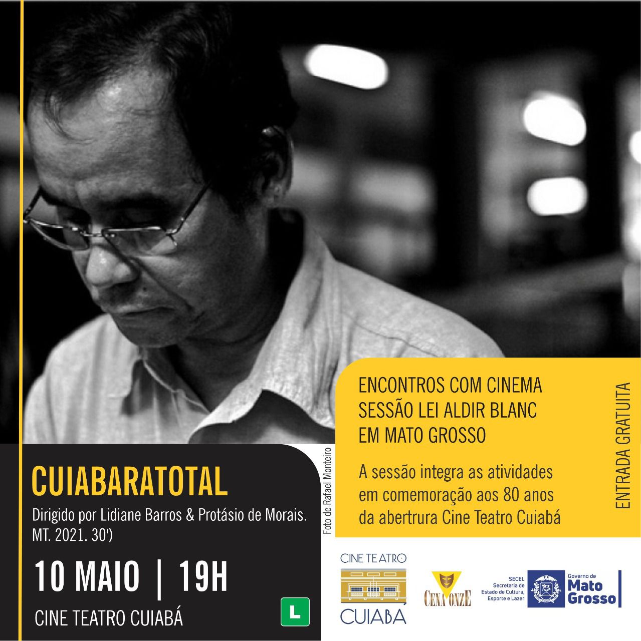 Auto-proclamado o “poeta da transmutação”, o saudoso Antônio Sodré, ou Sodrezinho, é homenageado no documentário “Cuiabaratotal” (MT, 2021, 30′), dirigido por Lidiane Barros & Protásio de Morais, atração presencial nessa terça-feira, 10 de maio, às 19h30, no Cine Teatro Cuiabá. A sessão integra o projeto “Encontros com Cinema” e a agenda de comemorações dos 80 anos da abertura do Cine Teatro Cuiabá (inaugurado em 23 de maio de 1942). A partir das 19h, os multiartistas André Balbino & Eduardo Ferreira, amigos e parceiros criativos de Antônio Sodré, fazem performance poético-musical no foyer do Cine Teatro, antes da exibição do filme. Classificação indicativa livre e entrada gratuita. A partir das 19h30 é permitido estacionar em frente ao Cine Teatro Cuiabá.