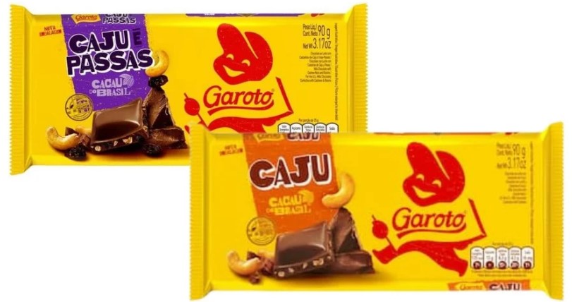 - Lote 225312941G: chocolate ao leite com Castanhas de Caju e Uvas Passas, marca Garoto, tablete 80g, validade 09/09/2023