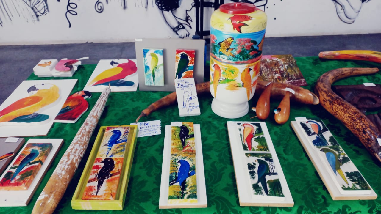 De fato, não importa a matéria-prima: restos de madeira, pedras, cabaça, vidros, cerno (madeira que vem rodando pelo rio) tudo ganha cor e se transforma em peças únicas quando o artista dá asas à imaginação.