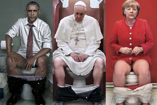 Artista publica imagens de líderes mundiais usando a privada