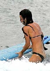 Evangeline Lilly, a Kate da série Lost, foi fotografada com o bumbum aparecendo enquanto surfava em uma praia do Havaí no final de semana. Uma onda tirou a parte debaixo do biquíni da atriz do lugar.