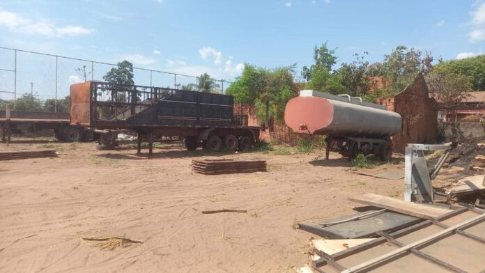 No local foram localizados os semirreboques com indícios de adulteração, uma camionete Toyota Hilux com suspeitas de supressão do número do chassi e plaquetas, além de ferramentas e equipamentos de solda, maçarico e pintura, utilizados para desmontar, remontar e regravar as estruturas veiculares.