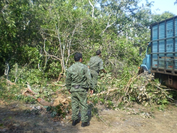Policiais Militares do Batalhão Ambiental localizaram um caminhão roubado que estaria escondido em uma mata na comunidade Cabocla, município de Nossa Senhora do Livramento.