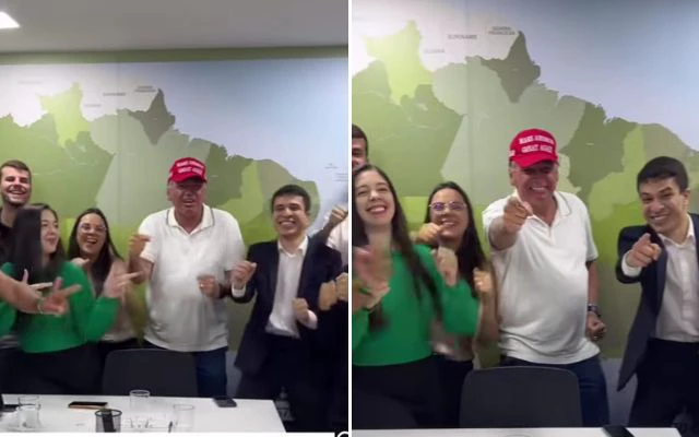 Em um encontro descontraído com jovens do Partido Liberal (PL) nesta segunda-feira (11), em Brasília, o ex-presidente Jair Bolsonaro (PL) surpreendeu ao fazer a “dancinha” do presidente eleito dos Estados Unidos, Donald Trump. Bolsonaro usava um boné da campanha de Trump e demonstrou animação ao lado dos apoiadores, o que foi registrado em vídeo e compartilhado no perfil oficial do PL no Instagram.