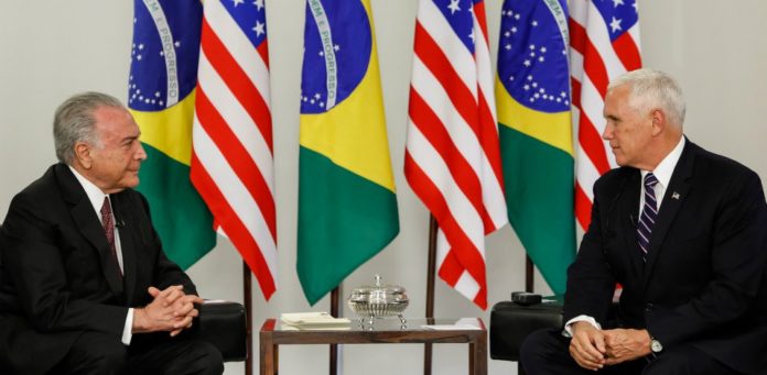 Em reunião bilateral nesta terça-feira (26), o presidente da República, Michel Temer, e o vice-presidente dos Estados Unidos, Mike Pence, debateram temas em comum, como segurança, democracia, investimentos e a crise humanitária que ocorre na Venezuela. Como forma de apoiar a força-tarefa do Governo do Brasil para acolher os imigrantes, Pence anunciou que o país destinará mais US$ 10 milhões para o suporte de imigrantes venezuelanos, sendo US$ 1 milhão diretamente para o Brasil.