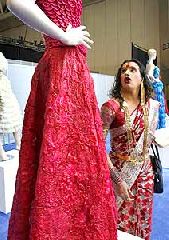 A brasileira Adriana Bertini é a responsável pelas peças que estão expostas na Conferência Internacional sobre Aids, realizada nesta semana em Toronto, no Canadá. Ela criou roupas usando preservativos no lugar dos tecidos.
