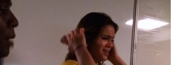 Bruna foi flagrada perto dos camarotes, com um celular na mão em prantos, provavelmente recebendo as notícias da condição do craque. De acordo com um torcedor que saía, na altura, do estádio, a atriz estava acompanhada por seguranças e a irmã de Neymar, Rafaella Santos.