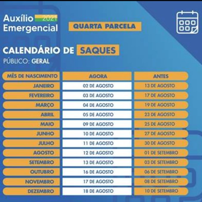O grupo de hoje faz parte do ciclo 4 do programa emergencial, que teve o calendário antecipado pelo governo federal em sete dias na última quinta-feira (17). Este é a última etapa antes das três parcelas extras autorizadas pelo governo federal em meio à pandemia.