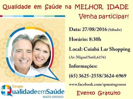 O evento será realizado em nível nacional no dia 27 de agosto. Aqui em Cuiabá acontecerá no Cuiabá Lar Shopping às 8h30. “Vamos realizar várias palestras informativas para que as pessoas entendam que a melhor idade pode ser uma das melhores fases da vida. Por isso, manter uma boa saúde é essencial após os 60 anos. É importante que homens e mulheres façam exames preventivos médicos e também odontológicos, visto que os cuidados com a saúde bucal auxiliam na prevenção de infecções e também em outros problemas”, comenta Gisele Andrade, dentista e integrante do Qualidade em Saúde grupo que estará realizando evento em Cuiabá.