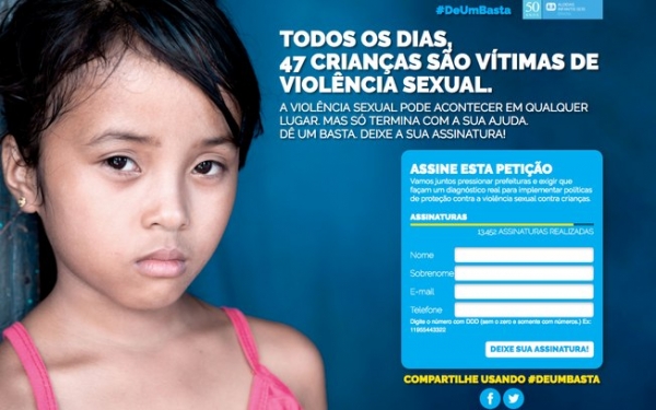 A instituição Aldeias Infantis SOS lançou uma petição online para pressionar o poder público a fazer um diagnóstico sobre a violência sexual contra crianças e adolescentes e, posteriormente, planejar ações efetivas de combate ao problema. O documento da campanha Dê um Basta será entregue aos gestores municipais no dia próximo dia 5.