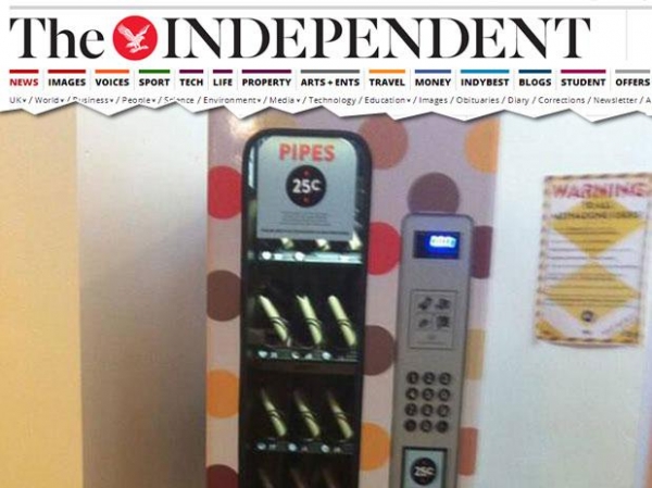 Uma ONG canadense instalou uma máquina de cachimbo de crack em um centro de tratamento de drogas em Vancouver, Canadá. Segundo o jornal Independent, o grupo responsável pela instalação afirmou que os objetos são mais seguros já que dispensam as tubulações de vidro que superaquecem e quebram – o que causa cortes nas bocas dos usuários e transmite diversas doenças tais como HIV, hepatite e gripe.