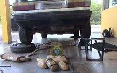 De acordo com a polícia, 7kg de cocaína escondidos no tanque de combustível do carro no qual os dois estavam. Um terceiro suspeito fugiu durante a abordagem.