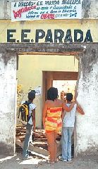 A Escola Estadual Parada Angélica está completamente corroída e abandonada. Logo na entrada, lê-se uma faixa comemorativa em que os moradores agradecem o “começo” das obras que ainda não vieram. Ao entrar no antigo colégio (fotos ao lado), sobraram apenas restos do que um dia foi uma sala de aula, ao lado do lixo e das fezes de ratos. Janelas e portas sumiram. Edenise ressalta ainda que as instalações do colégio, onde as salas de aula deveriam ser usadas pelos alunos, acabam tendo outro destino.
