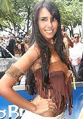 A estudante carioca Carollini, 19 anos, se descuidou na hora de colocar o pijama depois da festa desta quarta-feira e deixou escapar parte dos seios.