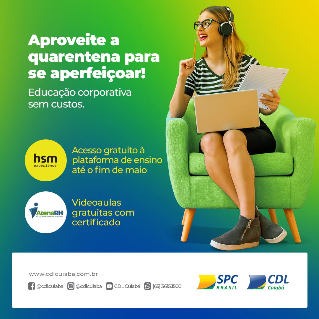 Outro grande parceiro que também estará oferecendo qualificação junto a CDL Cuiabá é a Atena RH. Na sua plataforma, os participantes terão acesso a diversos cursos, treinamentos para equipes de Vendas, entre outros. Tudo de forma on-line, sendo que este projeto tem como objetivo Motivar as Equipes de vendas, que terão acesso a mil vídeos com aulas disponibilizadas durante os meses de Abril à Julho de 2020, sendo que no final os participantes poderão receber certificado.