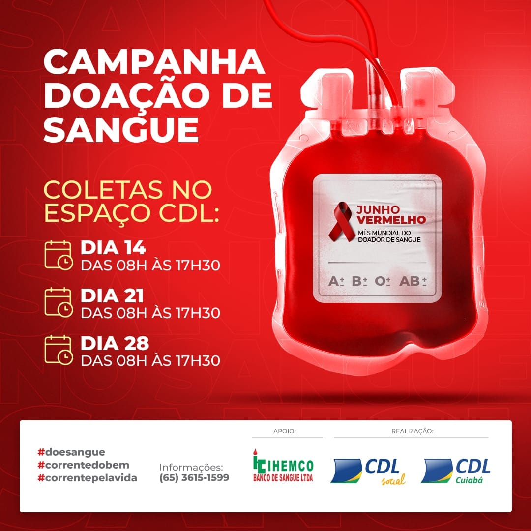 A Câmara de Dirigentes Lojistas de Cuiabá (CDL Cuiabá), através do programa CDL Social, em parceria com o banco de Sangue, IHEMCO, iniciará na próxima semana uma campanha de doação de sangue visto a necessidade de reabastecimento dos estoques que tiveram uma grande queda durante a pandemia da Covid-19. A ação também vem ao encontro do mês de alerta e de conscientização do ato de doar sangue, intitulado “Junho Vermelho” que faz parte de um rol de ações denominadas de Corrente do Bem, elaboradas com o objetivo de minimizar os impactos causados pela pandemia e para gerar um melhor equilíbrio social e econômico. O superintendente da CDL Cuiabá, Fábio Granja, explica que a ação é aberta a toda população. “Contamos com nossos colaboradores, diretores, associados e todos aqueles que se interessarem em fazer esse gesto de amor ao próximo. A doação é segura, estaremos atuando sob critérios sanitários que levam em conta a necessidade de prevenção ao novo coronavírus”, declarou ele. A ANVISA e o Ministério da Saúde (MS) atualizaram os critérios técnicos contidos na Nota Técnica 13/2020 editada pela Coordenação ¬Geral de Sangue e Hemoderivados do Ministério. Além das restrições já preexistentes, o documento informa as pessoas que não podem doar sangue diante da realidade atual de circulação do novo coronavírus (saiba quais são nas informações contidas ao final da matéria). Granja reforçou que neste momento é importante que as pessoas continuem fazendo a doação. “Independente da pandemia, existem pacientes com doenças hematológicas, por exemplo, que necessitam de transfusões sanguíneas regularmente. Por isso convidamos a todos os que estão aptos a doar a participarem conosco dessa campanha. Ao fazer esse gesto, o doador pode dar esperança de vida e de saúde para quem mais precisa e, vale ressaltar que uma única doação pode salvar até quatro vidas”. A coleta será realizada no Espaço CDL, durante as próximas três segundas-feiras (14, 21 e 28 de junho), das 08h00 às 17h30. Outras informações pelo telefone (65) 3615-1599. Essa será mais uma edição a ser realizada, já que a CDL há alguns anos tem desenvolvido esse trabalho de conscientização de doação de sangue, disponibilizando a sua estrutura física e canais de comunicação para mobilizar a população a doar. Por diversos anos foi realizada com a denominação de Campanha “Olga Haddad”. OUTRAS INFORMAÇÕES O IHEMCO é uma Instituição de caráter privado; surgiu principalmente para contornar os problemas que a cirurgia torácica vinha enfrentando com a falta de sangue na cidade. Pela qualidade e pela necessidade dos seus serviços, o IHEMCO foi crescendo e após dois anos de funcionamento, adquiriu os dois Bancos de Sangue que existiam em Cuiabá. Nos Hemocentros Privados a doação de sangue é voluntária, anônima, não remunerada e o sangue é repassado de forma gratuita aos Hospitais Privados. QUEM PODE DOAR 1) Ter entre 16 e 60 anos de idade (menor de idade, com autorização e presença dos pais); 2) Pesar no mínimo 55 kg; 3) Estar em boas condições de saúde e bem alimentado (doação após almoço, aguardar 2 horas); 4) Apresentar documento oficial com foto (RG, CNH, etc). QUEM NÃO PODE DOAR SANGUE: Impedimentos Temporários: 1) Gripe, Resfriado e Febre (aguardar 7 dias após o desaparecimento dos sintomas); 2) Período Gestacional (estar grávida); 3) Período Pós-Gravidez (90 dias parto normal e 180 dias cesariana); 4) Amamentação (se o parto ocorreu há menos de 12 meses); 5) Ingestão de Bebida Alcoólica nas 12 horas que antecedem a doação; 6) Tatuagem e/ou Piercing nos últimos 12 meses (piercing em cavidade oral ou região genital impedem a doação); 7) Extração Dentária (aguardar 07 dias) e Cirurgia Dentária com anestesia geral (aguardar 01 mês após procedimento); 8) Apendicite, Hérnia, Amigdalectomia, Varizes (aguardar 03 meses); 9) Colecistectomia, Histerectomia, Nefrectomia, Redução de Fraturas, Politraumatismos sem sequelas graves, Colectomia (aguardar 06 meses); 10) Transfusão de Sangue (aguardar 01 ano); 11) Exames/Procedimentos com utilização de Endoscópio (aguardar 06 meses); 12) Vacinação (varia de acordo com tipo da vacina); Impedimentos Definitivos: 1) Ter passado por um quadro de HEPATITE após os 11 anos de idade; 2) Evidência clínica ou laboratorial das seguintes doenças transmissíveis pelo sangue: 2.1) Sífilis; 2.2) Hepatite B; 2.3) Hepatite C; 2.4) AIDS (vírus HIV); 2.5) Doença de Chagas; 2.6) Doenças associadas aos vírus HTLV I e II. 3) Uso de drogas ilícitas injetáveis; 4) Malária; 5) Mal de Parkinson. QUANTO TEMPO DURA A DOAÇÃO DE SANGUE: O procedimento de doação de sangue é relativamente rápido. Desde o cadastro e triagem clínica até a coleta de sangue, o processo dura em média 50 minutos, ou seja, menos de uma hora. COMO PROCEDER APÓS UMA DOAÇÃO DE SANGUE: A doação de sangue é um processo rápido e bastante simples, e algumas precauções devem ser tomadas após a doação, vejamos: 1) Não realize esforços físicos nas 12 horas seguintes à doação; 2) Após a doação, aumente a ingestão de líquidos e evite bebidas alcoólicas por um período de 12 horas; 3) Procure não fumar, por um período de 02 horas após doação; 4) Espere pelo menos 04 horas para retirar o curativo do local da punção. CORONAVÍRUS (COVID-19): – Candidatos que apresentarem infecção pelo Covid-19 somente poderão doar no período de 30 dias, após recuperação clínica completa; – Candidatos que tiveram contato direto (domiciliar e profissional) com casos suspeitos ou confirmados de contaminação por coronavírus devem aguardar 07 dias após o último dia de contato, para realizar a doação de sangue; – Profissionais da saúde (médicos, enfermeiros, entre outros) que trabalham diretamente com pacientes portadores da Covid-19 devem aguardar 14 dias após o último dia