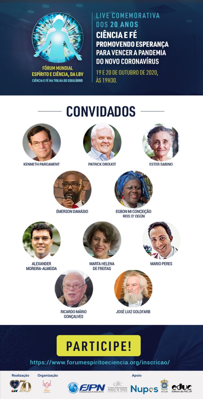 Discutir os anseios da sociedade frente ao papel da Ciência e da Religião no contexto da pandemia da Covid-19 é o que será debatido por cientistas e religiosos durante a live dos 20 anos do Fórum Mundial Espírito e Ciência (FMEC), da LBV, sob o tema “Ciência e Fé promovendo Esperança para vencer a pandemia do novo coronavírus”, que ocorrerá nos próximos dias 19 e 20 de outubro, às 19h30.