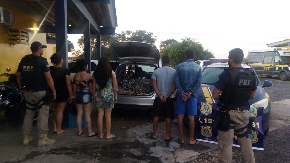 De acordo com a PRF, os cinco suspeitos, sendo três mulheres e dois homens, estavam em um carro com registro de roubo. O carro é do modelo Gol.
