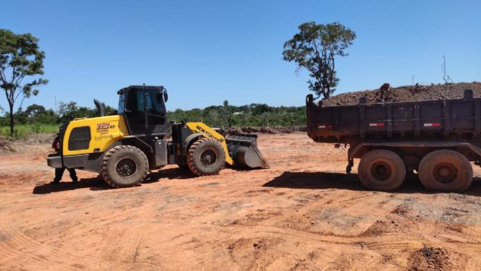 No local, os policiais constataram a atividade ilícita, sendo encontradas na área uma pá carregadeira, um caminhão já carregado e outros dois aguardando para serem armazenados com o material extraído.