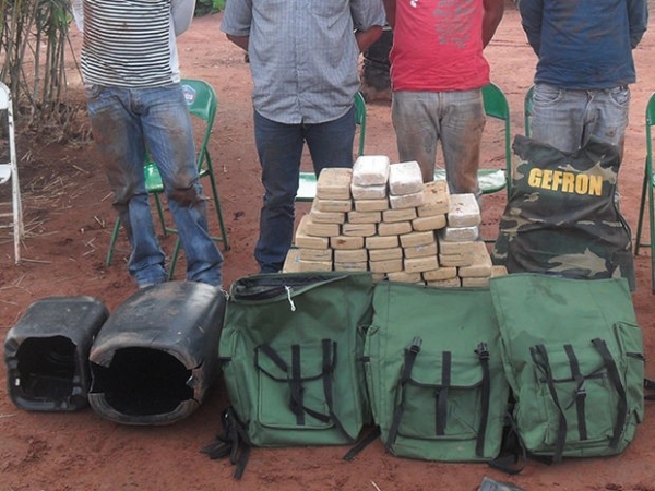 Cinco pessoas foram presas em flagrante na zona rural do município de Cáceres, a 204 quilômetros de Cuiabá, com 52 quilos de pasta base de cocaína que estavam escondidos em um fundo falso de dois galões. A quadrilha foi desarticulada em uma ação do Grupamento Especial de Fronteira (Gefron).