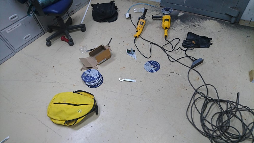 No banco, a polícia encontrou uma furadeira, discos de cortes, bolsas e luvas que teriam sido usadas para a ação.