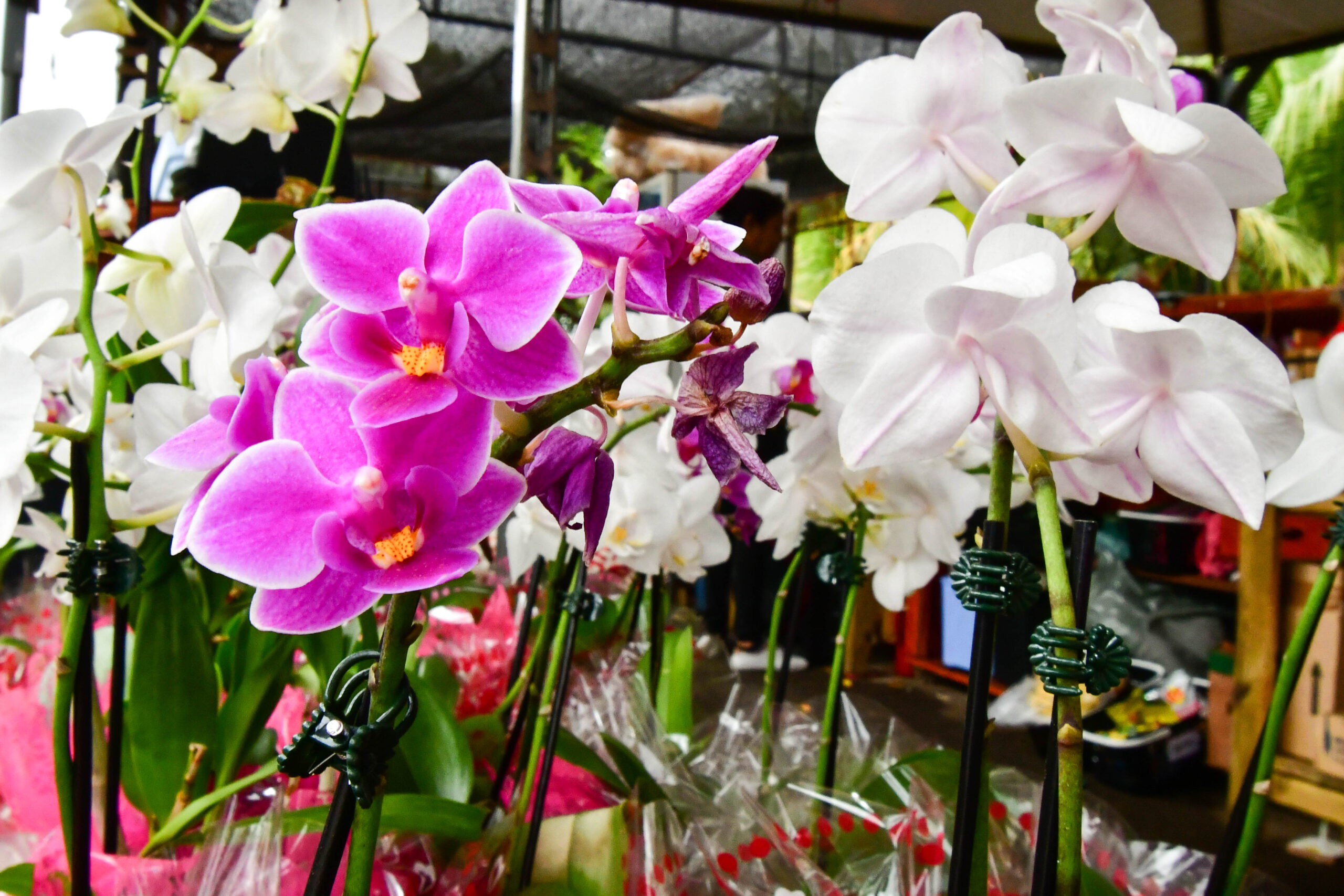 Entre orquídeas de cores e formatos variados…