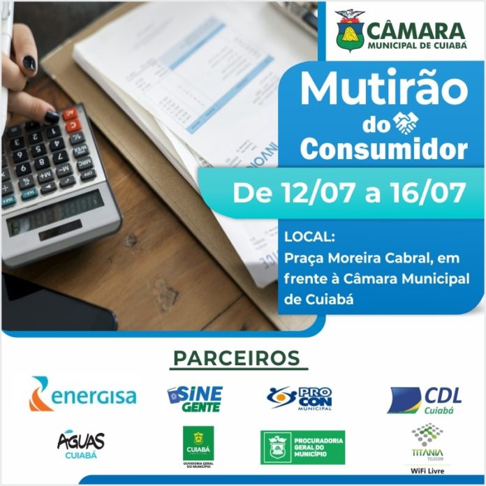 A ação é realizada pela Câmara Municipal de Cuiabá, por meio da Comissão de Defesa do Consumidor e do Contribuinte. Os trabalhos ocorrerão até o dia 16 de julho (sexta-feira), das 7h30 às 13h30, na praça Moreira Cabral – que fica em frente ao Legislativo cuiabano.
