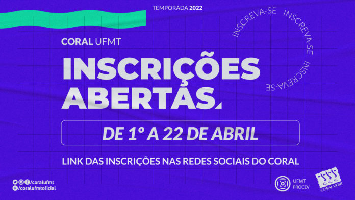 As inscrições da temporada 2022 para novos coralistas ingressarem no Coral UFMT já estão abertas. A novidade para este ano é o retorno às atividades presenciais. Os interessados poderão realizar a inscrição de 1º a 22 de abril pelos links disponibilizados pelas redes dos grupos.
