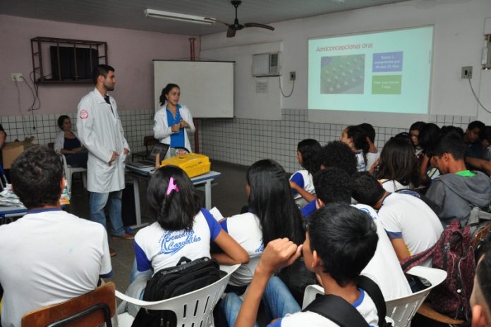 Visando diminuir o índice de gravidez na adolescência e o risco de contaminação por Infecções Sexualmente Transmissíveis (IST/Aids), a Secretaria Municipal de Saúde (SMS) realiza entre os dias 11 e 15 uma programação voltada diretamente aos jovens. Nesta segunda-feira (11), estudantes da Escola Estadual Benedito Carvalho, do bairro CPA I, receberam palestras e orientações sobre o tema. A agenda faz parte da programação da ‘Semana do Adolescente’.