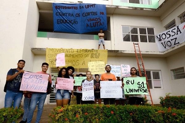 Também houve protesto de estudantes na UFMT em 2018, com greve estudantil e ocupação do prédio da Reitoria e diversos blocos dos quatro campi da instituição (Cuiabá, Sinop, Araguaia e Várzea Grande). O protesto, que durou mais de 60 dias, foi contra os cortes de recursos da Educação e aumento das refeições nos Restaurantes Universitários (saiba mais aqui).
