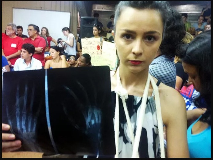 Estudante mostra Raio-X da mão quebrada após agressão de policiais em 2013