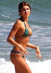 Enquanto Cauã colocou surfava no mar, Grazi ficou na areia e até desamarrou a parte de cima do biquíni para apagar as marcas das costas.