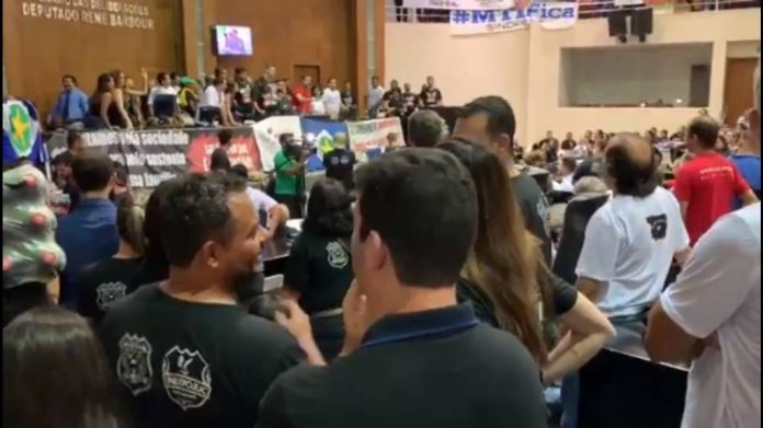 Mesmo com a determinação judicial, o plenário da Assembléia Legislativa continua lotado de servidores que são contra as privatizações e outras medidas tomada pelo novo governador Mauro Mendes.