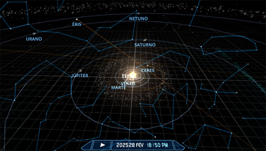 A plataforma também descreve como essa aparição conjunta se dará na paisagem celeste: