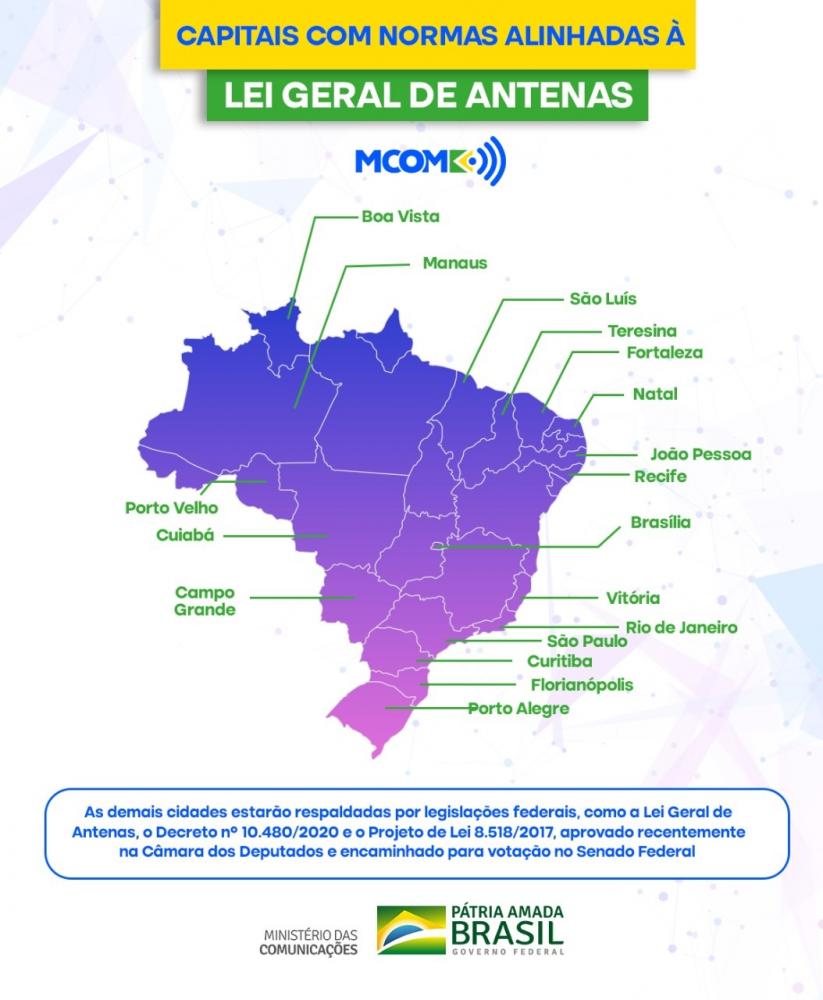 As Câmaras Municipais e prefeituras dessas capitais alinharam suas normas à Lei Geral de Antenas (Lei nº 13.116/2015) e ao Decreto 10.480/2020, visando contemplar a necessidade para instalação de, no mínimo, uma antena para cada 100 mil habitantes. Essa infraestrutura chega a ser quatro vezes menor em relação às antenas 4G, levando-a a consumir menos energia e contribuindo para a sustentabilidade urbana.