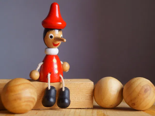 Pinóquio sentado em bloco de madeira