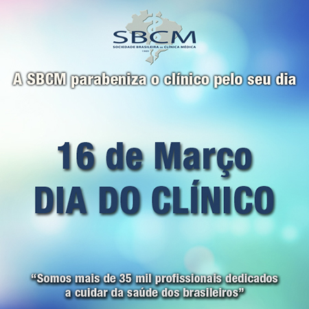 No dia 16 de março de 2016 comemoramos, pela primeira vez, o Dia do Clínico. Uma data que faz justa homenagem à especialidade com o maior número de médicos titulados no Brasil. A data foi anunciada oficialmente durante as atividades do 13º Congresso Brasileiro de Clínica Médica, que aconteceu de 08 a 11 de outubro de 2015 na cidade de Florianópolis (SC).