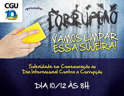 Há 10 anos, no dia 9 de dezembro de 2003, mais de 100 países firmavam um acordo com o objetivo de combater a corrupção instalada em várias nações. Desde então, nessa data, é celebrado o Dia Internacional Contra a Corrupção que, este ano, será comemorado em Cuiabá, no dia 10 de dezembro, a partir das 8h, no Sesipark. Com ato solene e programação voltada às crianças, o evento é uma realização da Controladoria Geral da União (CGU), em parceria com o Instituto Mauricio de Sousa, Correios, Sindicato Nacional de Analistas e Técnicos de Finanças e Controle (Unacon Sindical) e Serviço Social da Indústria (Sesi-MT), entidade do Sistema Federação das Indústrias no Estado de Mato Grosso (Sistema Fiemt).