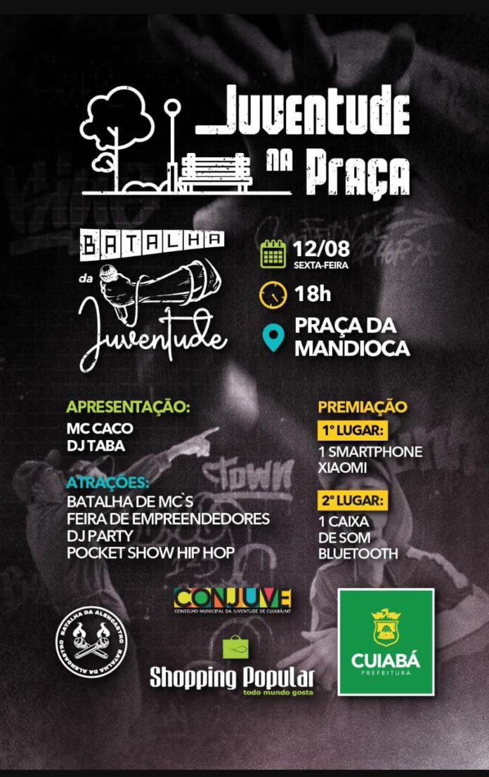 Nesta sexta-feira (12), data em que é comemorado o Dia Nacional da Juventude, a Secretaria Adjunta de Direitos Humanos e a Secretaria Municipal de Cultura, Esporte e Lazer prepararam um evento especial. Por meio do “Juventude na Praça”, os jovens e alunos da rede pública e privada irão contar com atrações musicais e artísticas, a partir das 18h, na Praça da Mandioca. A programação conta com feiras de empreendedorismo, Batalha de MCs, DJ Party e Pocket Show Hip Hop.