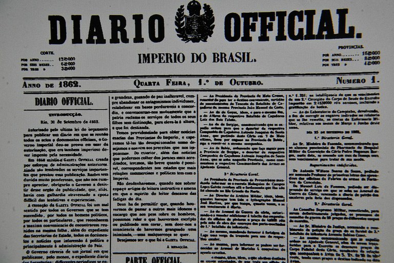 Em outubro deste ano, o Diário Oficial da União (DOU) completou 155 anos de existência. A primeira edição foi impressa e distribuída em 1° de outubro de 1862, quando a publicação ainda circulava sob o nome de Diario Official do Império do Brasil.